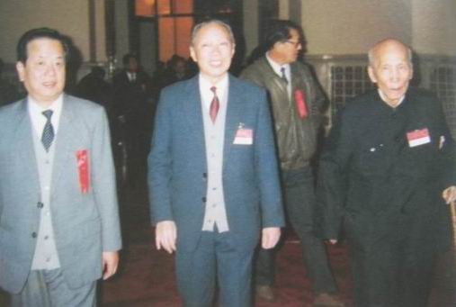 1992年致公党第十次代表大会,钱其琛(左一)代表中共中央到会祝贺右为黄鼎臣