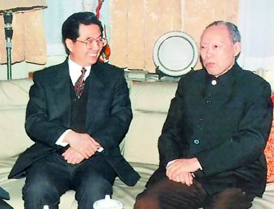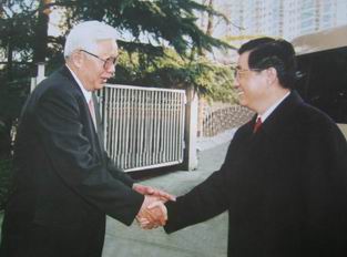2003年江泽民总书记与致公党中央副主席吴明熹