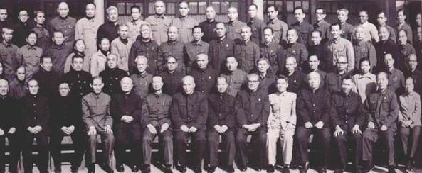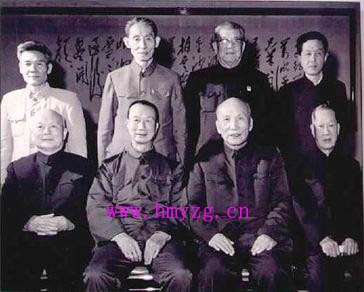 图为:9人组成的中央常务委员会。黄鼎臣(右二)为主席,伍觉天(左二)、伍禅(右一)为副主席,邝明(左一)为秘书长 |