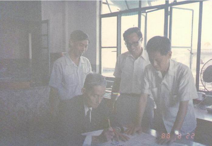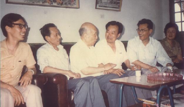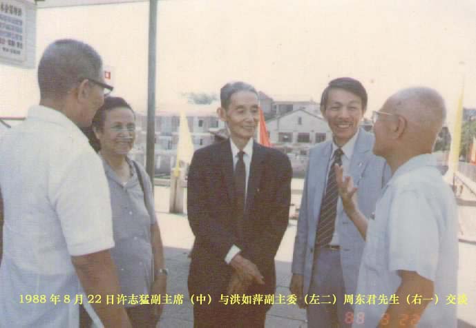 1988年8月22日许志猛副主席(中)与洪如萍副主委(左二)周东君先生(右一)交谈